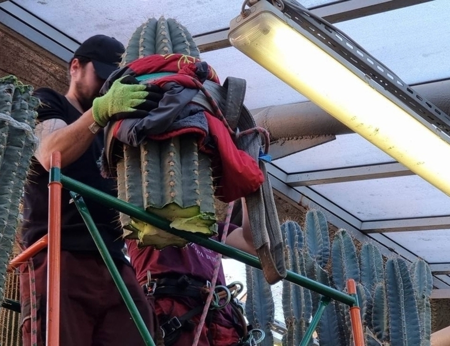 Представьте: почти век этот кактус тянулся к солнцу, не зная преград. Но в какой-то момент стеклянный потолок оранжереи стал непреодолимой границей. И что дальше? Оставить всё как есть и ждать, пока природа возьмёт своё? Садоводы не стали рисковать — они пошли на радикальный шаг. Обрезка прошла под прицелом внимания специалистов, вооружённых специальными инструментами и защитным снаряжением. Ведь даже малейшее прикосновение к колючкам этого растения может обернуться неприятными последствиями.