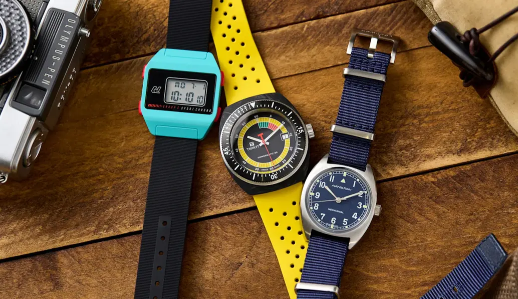 Коллекция часов SWATCH NEON - настоящая находка для любителей ярких цветов. Один из фаворитов коллекции - модель в розовом, фиолетовом и голубом цветах. При минималистичном циферблате и цене ниже 100 долларов, эти часы отлично подойдут для пляжного отдыха. Единственный недостаток - водонепроницаемость только до 30 метров.