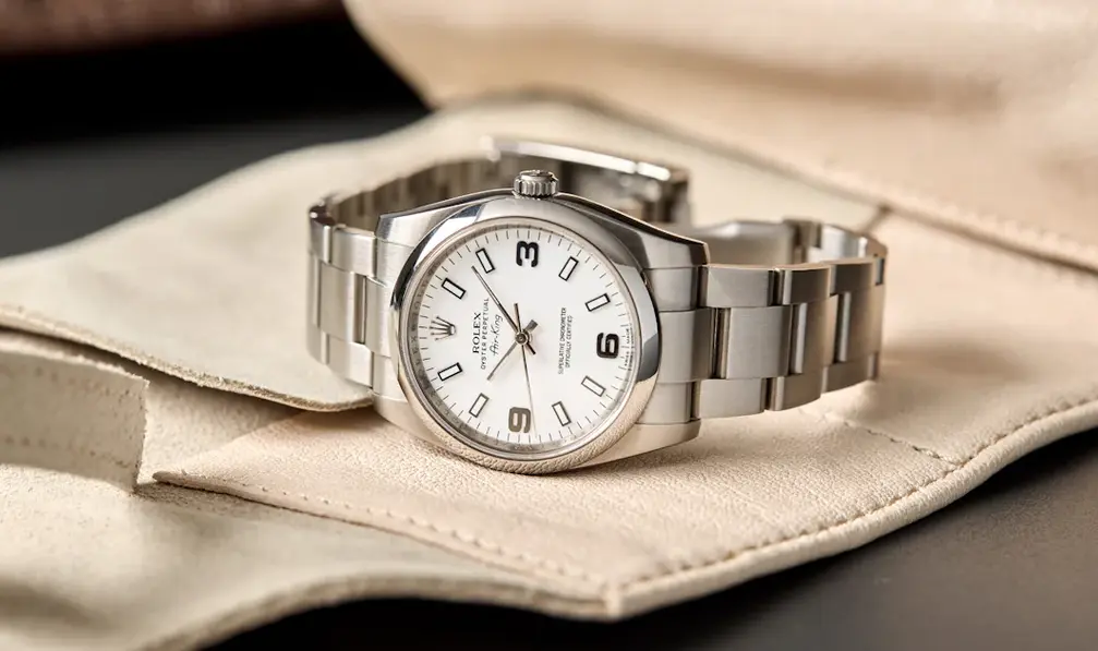 Rolex Oyster Perpetual Air-King 114200 - это заметная модель в истории линии Air-King от Rolex, которая является воплощением точности и авиационного наследия, начиная с Второй мировой войны. Представленная в 2007 году, модель 114200 - это современная интерпретация классического дизайна, сочетающая прочность и элегантность.